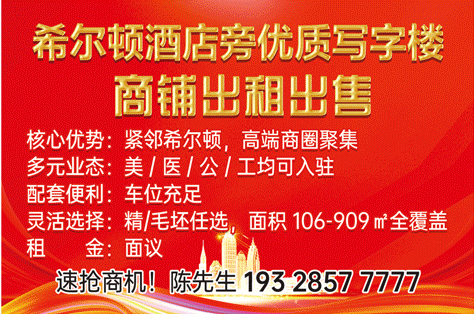 【希尔顿酒店旁优质写字楼 商铺】出租出售核心优势:紧邻希尔顿,高端商圈...